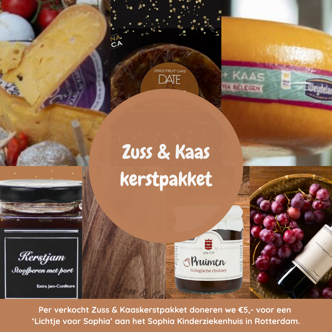 Het Zuss & Kaas kerstpakket is het perfecte relatiegeschenk! Een heerlijk kerstpakket of eindejaarsgeschenk om te krijgen met lekkere oude, pittige kaas. Wij pakken het pakket mooi in, met versiering, zodat de ontvanger een echt feestelijk pakket ontvangt.